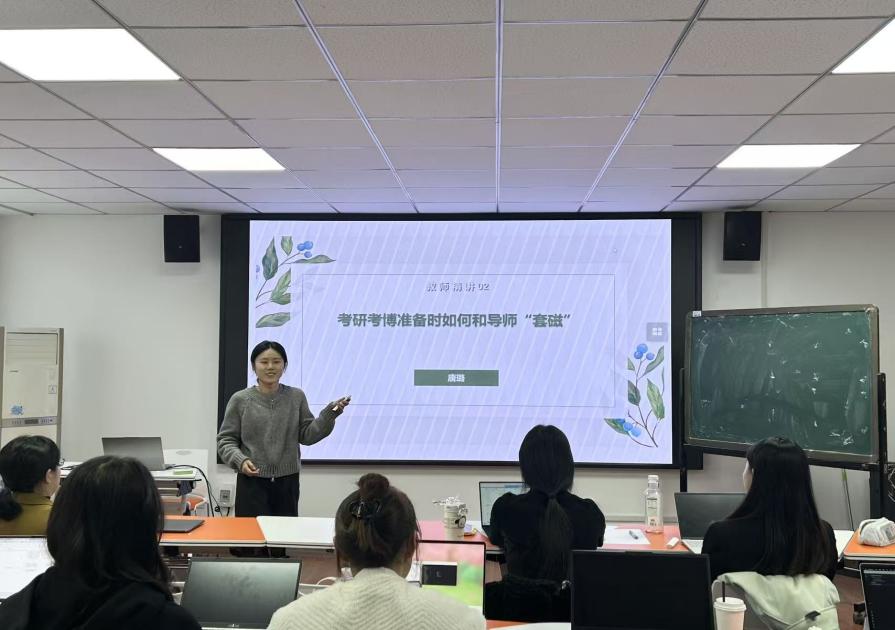 为切实破解学生升学规划中的困惑难题,搭建研究生和本科生交流互动的优质平台,助力学生明确发展方向、提高升学竞争力,我院于2025年10月22日在汇文楼251教室成功举办以“明晰前路,破局前行—你的升学规划导航”为主题的学术沙龙活动。副院长邵祥东、硕士生导师杜雅琼、唐璐、刘文韬以及线下36名学生参与现场活动,另有52名学生线上参与。副院长邵祥东作为指导教师出席本次活动。活动伊始,杜雅琼老师作为本次活动的负责人,介绍了活动环节与流程,并宣布活动正式开始。