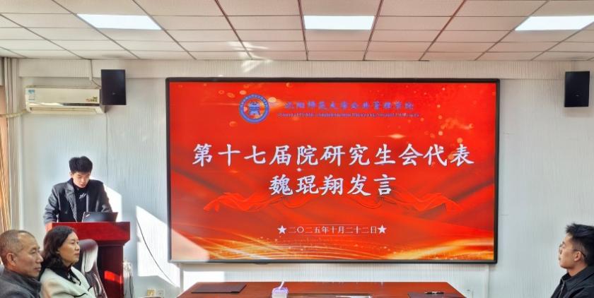 会议最后,邵祥东副院长进行总结讲话。他首先肯定了第十七届研究生会的工作成果。其次,他针对工作交接提出明确要求,强调交接不是简单的资料移交,更是责任与经验的传递。然后,他对新一届研究生会全体成员寄予厚望,结合公共管理学科“知行合一”的特点,鼓励大家将研究生会的工作作为实践课堂,既要“低头干实事”,在服务师生中锤炼执行力;也要“抬头看方向”,结合学院学科建设、人才培养目标合理规划学习、工作与生活;更要“相互搭把手”,在团队协作中培养大局意识。最后,他希望新一届研究生会全体成员能够尽快进入工作角色,向上一届学长学姐学习,在实践中实现成长。